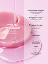 Water, Glycerin, Niacinamide, Hydrolyzed Collagen, Calcium Chloride, Butyrospermum Parkii Butter, Butylene Glycol, 1,2-Hexanediol, Sodium Hyaluronate, Potassium Hyaluronate, Glutathione, Ceramide NP, Dimethylsilanol Hyaluronate, Sodium Acetylated Hyaluronate, Sodium Hyaluronate Crosspolymer, Acetyl Hexapeptide-8, Hydroxypropyltrimonium Hyaluronate, Hydrolyzed Sodium Hyaluronate, Hydrolyzed Hyaluronic Acid, Hyaluronic Acid, Copper Tripeptide-1, Acetyl Tetrapeptide-5, Palmitoyl Tripeptide-1, Palmitoyl Tripeptide-5, Palmitoyl Pentapeptide-4, Hexapeptide-3, Caffeine, Glucomannan, Chondrus Crispus Powder, PEG-60 Hydrogenated Castor Oil, Hydroxyacetophenone, Pentylene Glycol, Ceratonia Siliqua Gum, Xanthan Gum, Ethylhexylglycerin, Dextrin, Monascus Extract, Hydroxyethylcellulose, Adenosine, Disodium EDTA, Gardenia Florida Fruit Extract, Caprylic/Capric Triglyceride, Hydrogenated Lecithin, Tocopheryl Acetate, Prunella Vulgaris Extract, Fucus Vesiculosus Extract